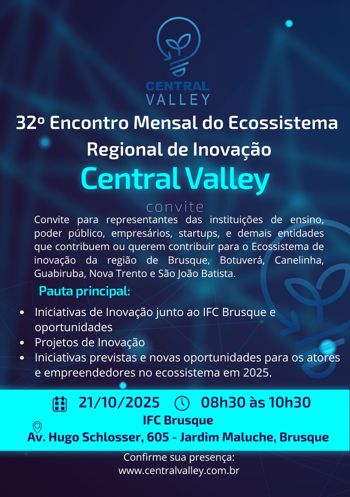 Fica o convite para participarmos junto ao IFC Brusque do 32º Encontro Mensal – Ecossistema Regional de Inovação em...VER EVENTO