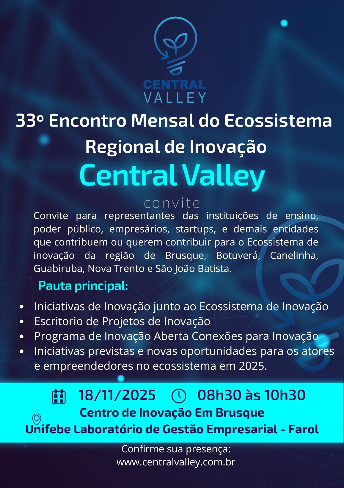 Fica o convite para participarmos junto ao Centro de Inovação em Brusque do 33º Encontro Mensal – Ecossistema Regional...VER EVENTO
