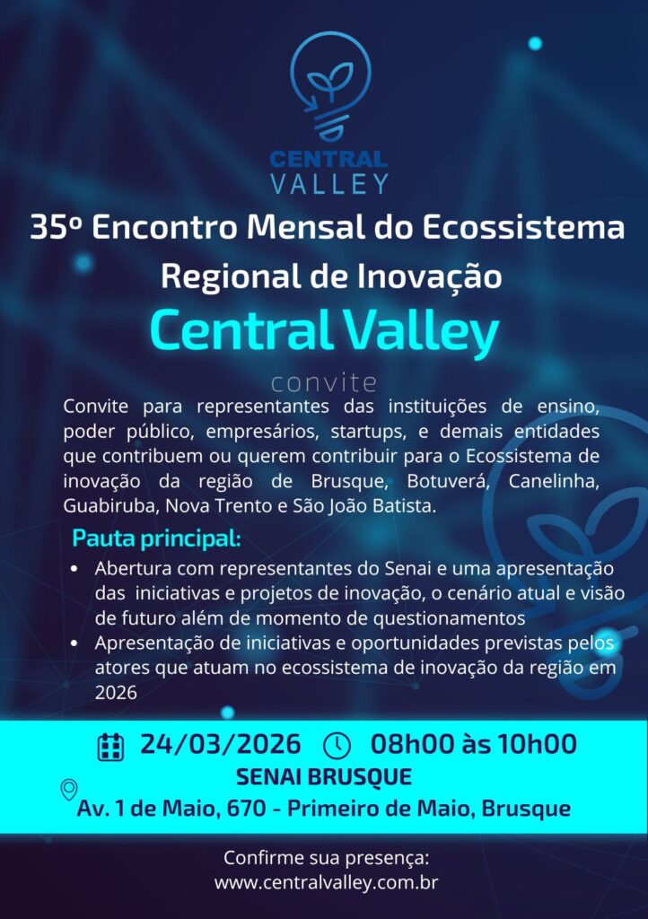 35º Encontro Mensal – Ecossistema Regional de Inovação em Brusque e Região – Central Valley