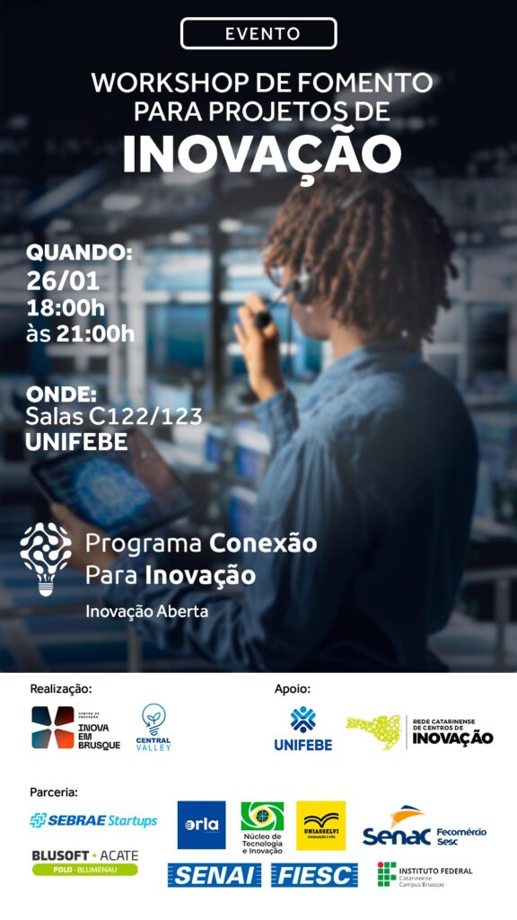 Programa de Inovação Aberta junto ao Ecossistema de Inovação em Brusque e Região Conexão para Inovação Evento Workshop de Oportunidades de Fomento para Projetos de Inovação O Programa Conexão para Inovação promove o encontro Workshop de Oportunidades de Fomento para Projetos de Inovação, um evento que tem como objetivo aproximar editais e programas de fomento […]