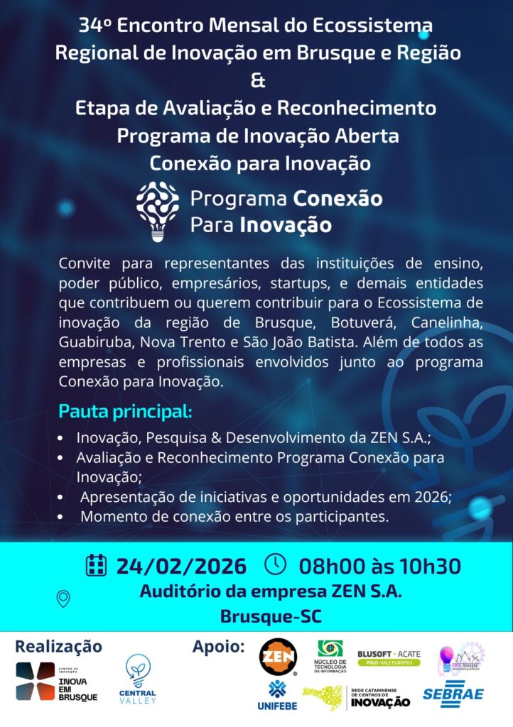 32º Encontro Mensal – Ecossistema Regional de Inovação em Brusque e Região – Central Valley