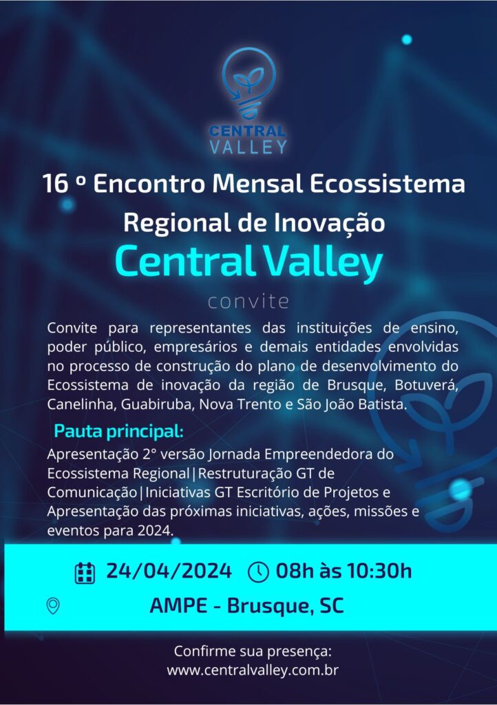 18º Encontro Mensal do Ecossistema Regional de Inovação em Brusque e Região – Central Valley